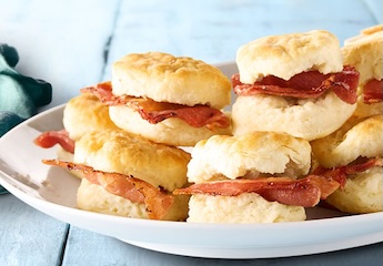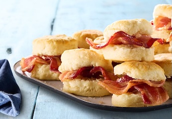 Party-sized, scratch-made biscuits with griddle-cooked bacon.