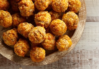 Our popular sausage balls, combining sausage, cheddar cheese, herbs, spices, and our special biscuit recipe.