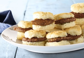 Party-sized, scratch-made biscuits with griddle-cooked turkey sausage.