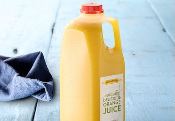 A half gallon of Florida’s Natural® Growers’ Pride® orange juice served with five 12 oz. cups with lids and straws.