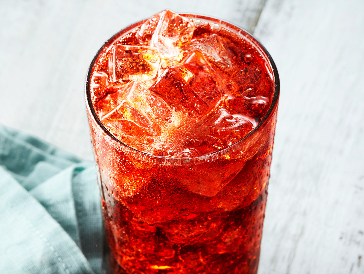 Our thirst-quenching lineup of strawberry drinks includes Strawberry Iced Tea, Strawberry Soda, and Strawberry Lemonade (shown here).