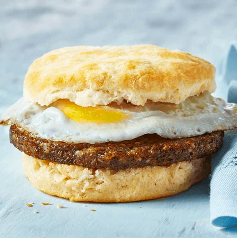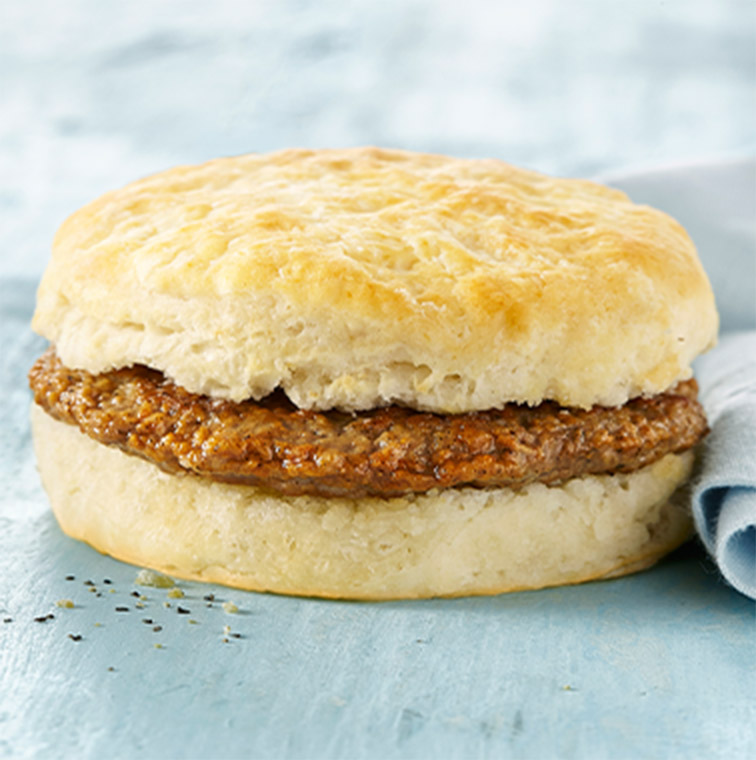Griddle-cooked turkey sausage served on a hot fresh biscuit.