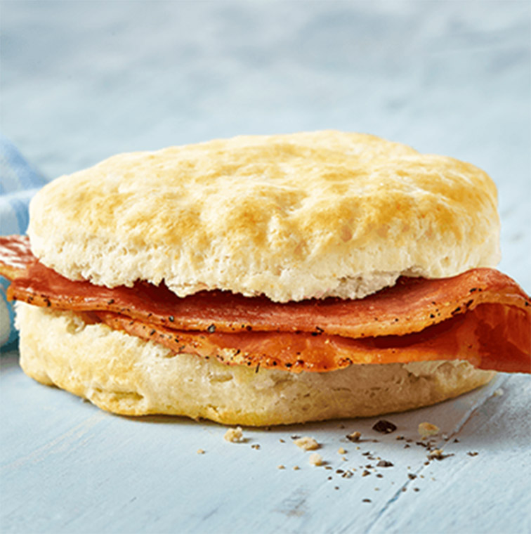 Locally cured and griddle-cooked country ham served on a hot, fresh biscuit.
